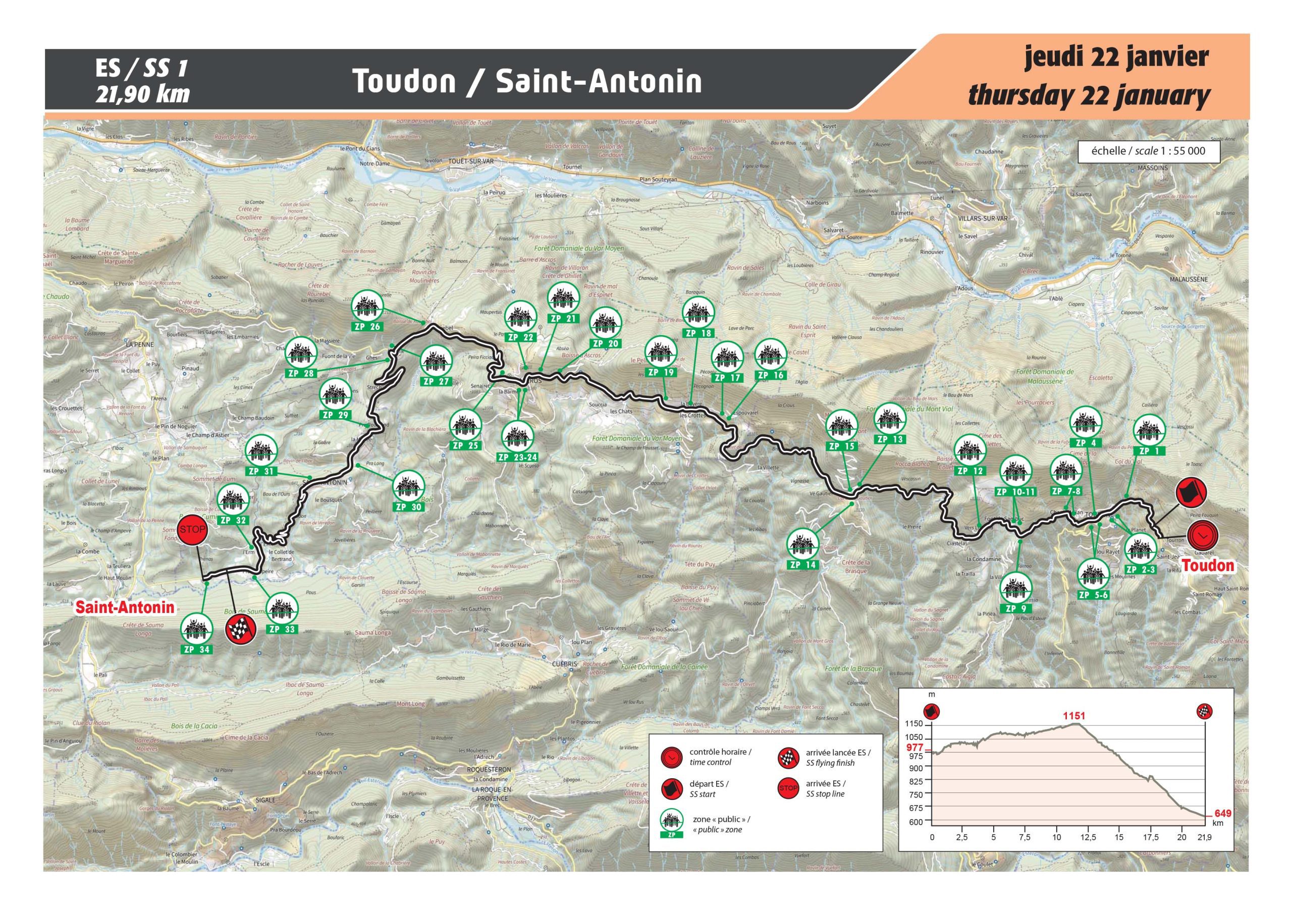 Le dernier passage dans cette spéciale, reconnue pour sa technicité, remonte à la 73e édition du Rallye Automobile Monte-Carlo en 2005. Départ et arrivée sont légèrement différents mais le parcours montagneux exposé en versant Sud et le dénivelé important en font une épreuve particulièrement difficile et exigeante pour les concurrents, notamment dans la partie étroite entre Toudon et Ascros, où la roche calcaire friable peut provoquer des éboulements sur la chaussée, augmentant ainsi les risques de crevaisons. La descente ensuite vers Saint-Antonin est plus roulante mais reste néanmoins très technique, avec de nombreuses épingles à négocier…
