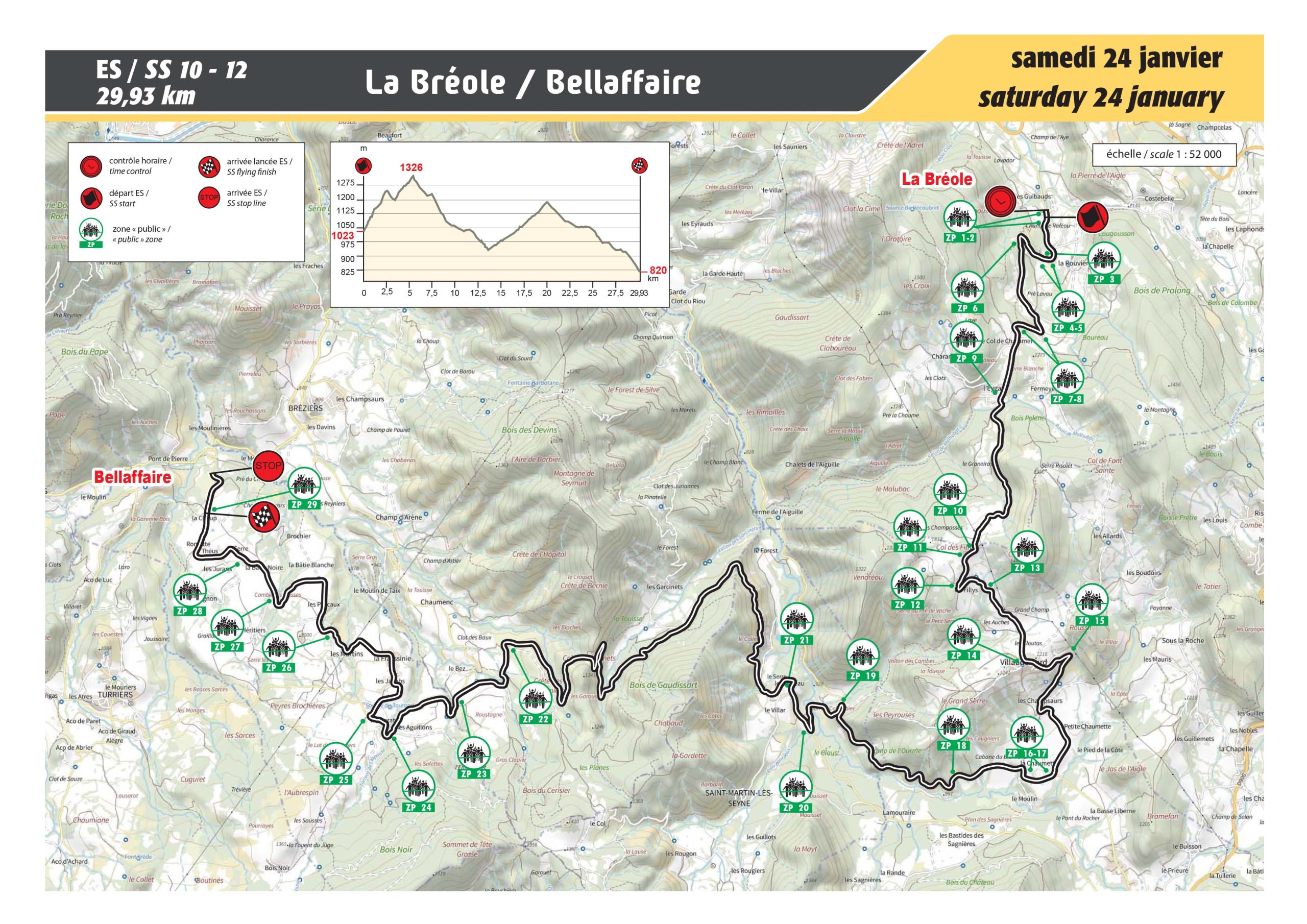 Plus longue épreuve de cette édition 2026, elle est sur le papier la compilation des ES 6/9 « La Bréole / Selonnet » de 2025 et de l’ES 8 « Selonnet / Bréziers » de 2014. La montée depuis le départ à la Bréole passe par les Cols de Charamel (1242m) et des Fillys (1322m) avant la descente rapide en direction de la vallée de la Blanche. La spéciale emprunte ensuite la route du Château à Saint-Martin-lès-Seyne avant d’attaquer la montée vers le Col des Garcinets (1250m) très souvent enneigée. Chaque année, il y a toujours des passages compliqués à négocier, avec de la glace, de la neige sur les bas-côtés, des coulées d’eau… bref, la route offre la part belle au pilotage à l’état pur. La descente est moins compliquée car mieux exposée, même si le délicat passage dans le hameau de la Freyssinie doit être appréhender avec prudence en vue de l’arrivée à Bellaffaire…