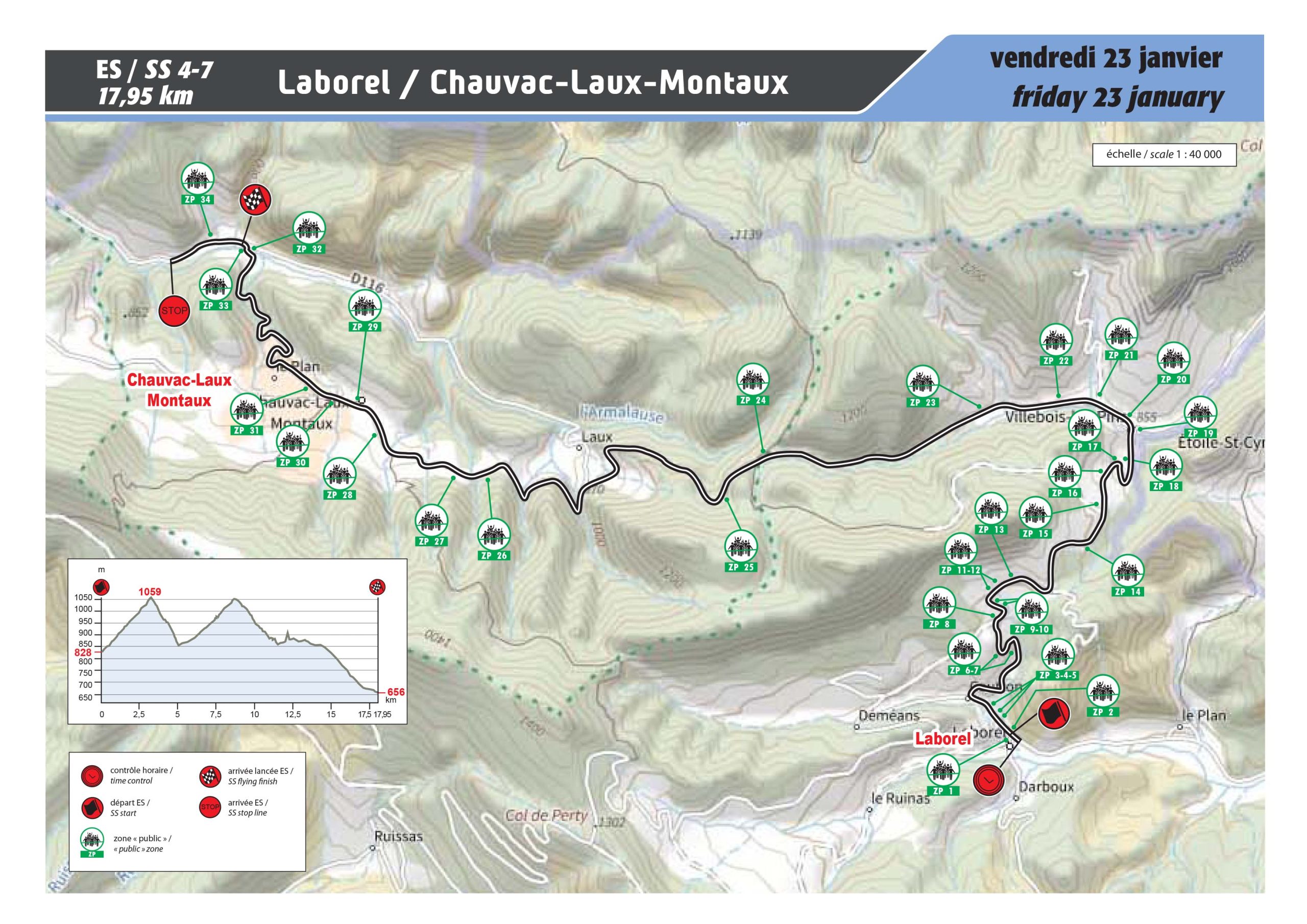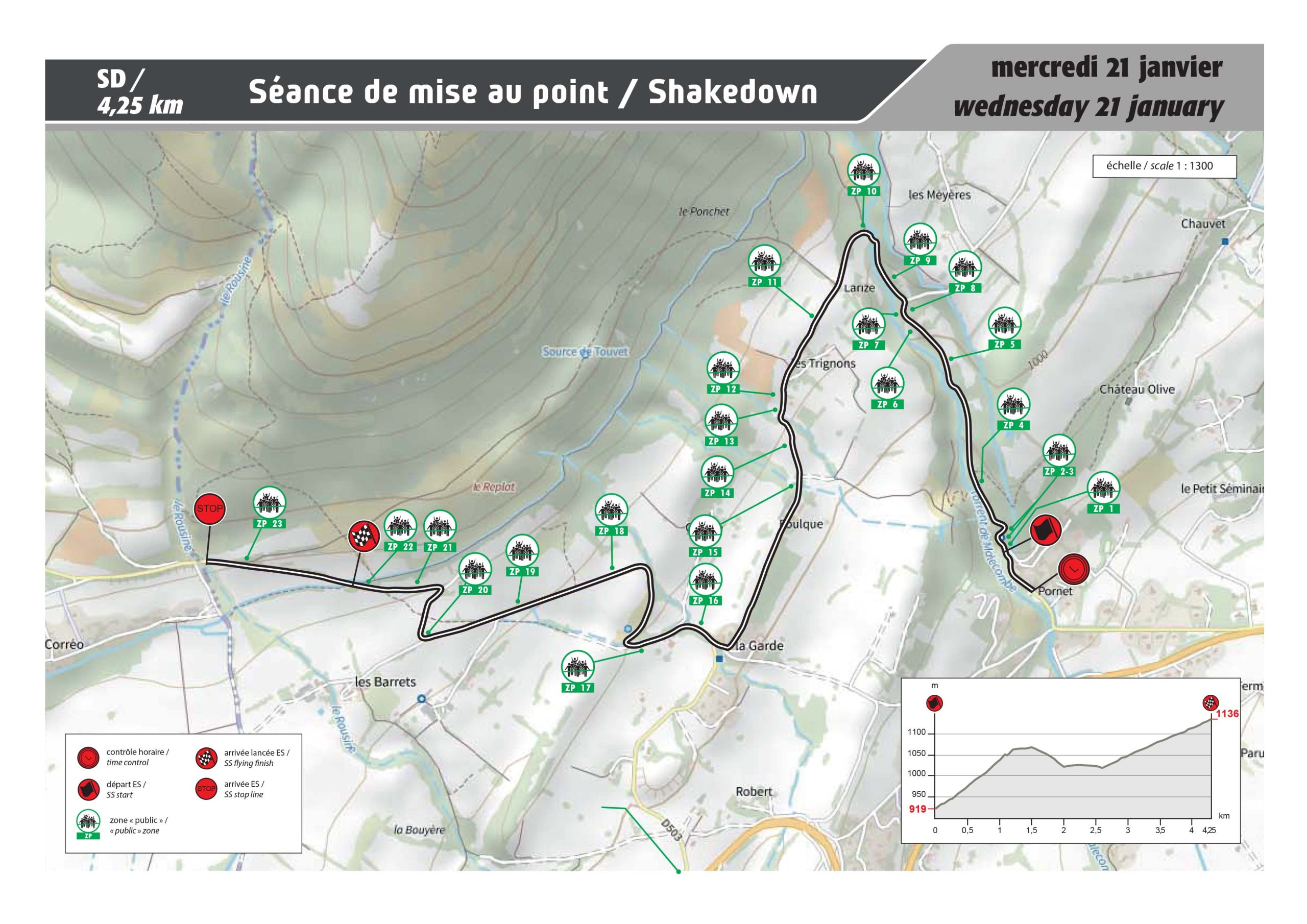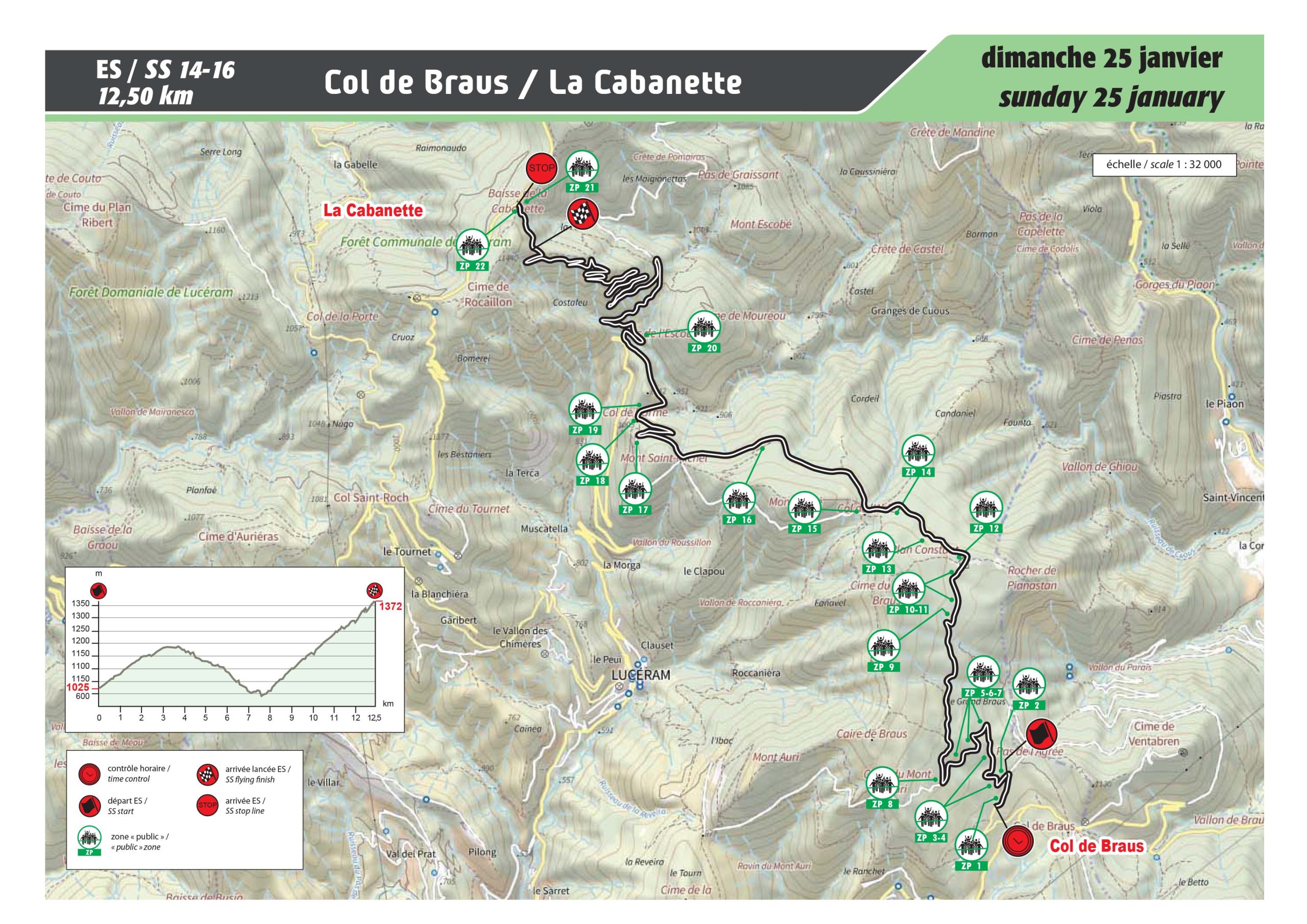 20 ans déjà que cette épreuve n’a pas été disputée, depuis en fait la 74e édition du Rallye Automobile Monte-Carlo de 2006. Le départ s’effectue en montée avec une succession d’épingles, suivie d’une portion sur une route dégradée très technique, majoritairement exposée en versant Nord en direction des Cols de l’Ablé (1149m) et de l’Orme (1005m). L’ascension vers la Cabanette est un enchaînement de 15 épingles sans aucun répit pour les équipages jusqu’à l’arrivée sur une route exposée Sud…