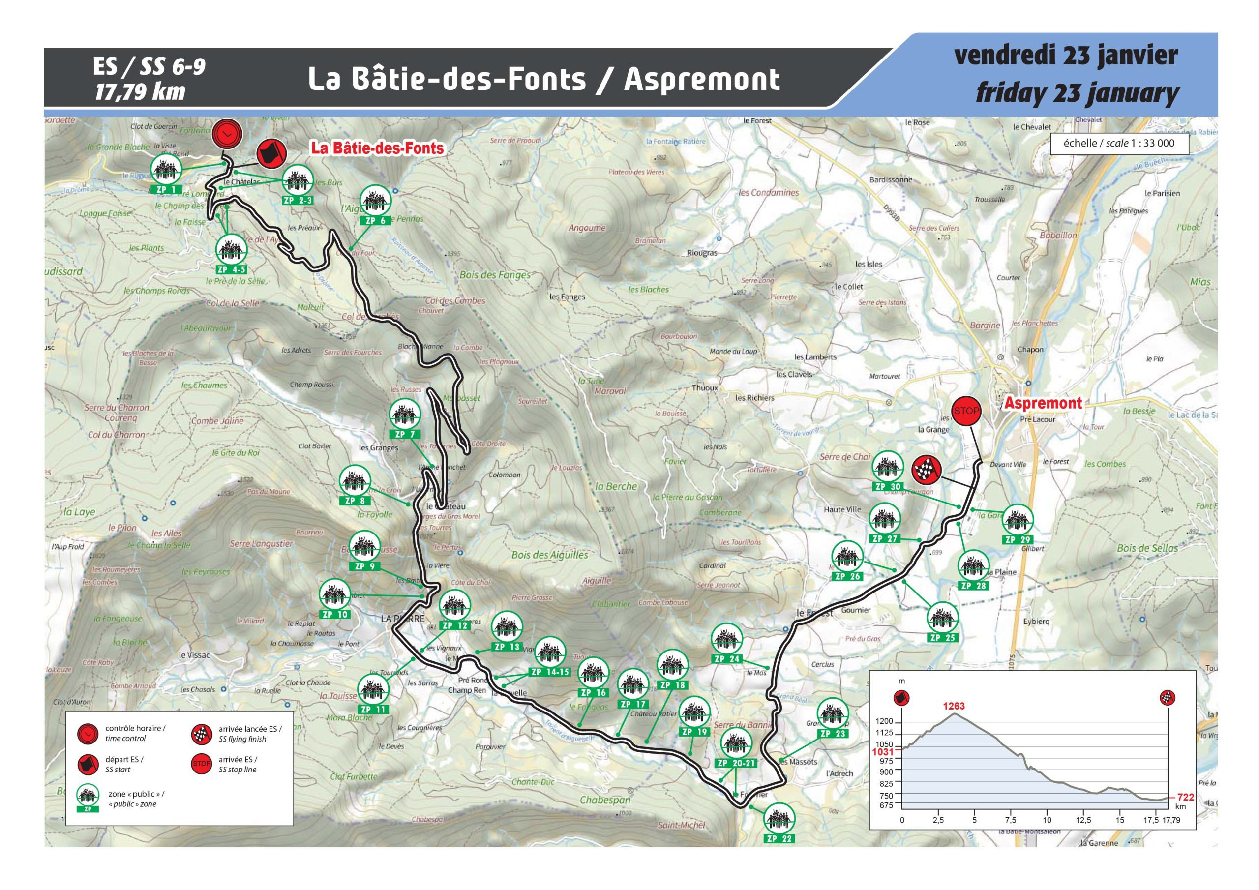 C’est la version modifiée et utilisée l’an dernier de l’ES 3/6 « Valdrôme / Sigottier » de 2019 lors de la 87e édition du Rallye Automobile Monte-Carlo. Une spéciale très rythmée, qui débute depuis la Bâtie-des-Fonds, l'un des plus petits villages de France (2 habitants recensés) où la Drôme prend sa source. La route est d’entrée étroite sinueuse en direction du Col de Carabes (1261m), frontière naturelle entre les départements de la Drôme et des Hautes-Alpes. La descente est très technique jusqu’à La Piarre, avant d’attaquer une partie finale très rapide de 8 kilomètres jusqu’à Aspremont…