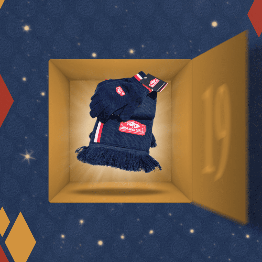 Bonnet et écharpe bleu marine ornée du logo exclusif du Rallye Monte-Carlo. Produits mixtes.